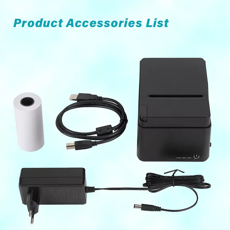 1. Paket şunları içerir: 80mm makbuz yazıcısı, kağıt rulosu, usb kablosu, kılavuzlar, adaptör.